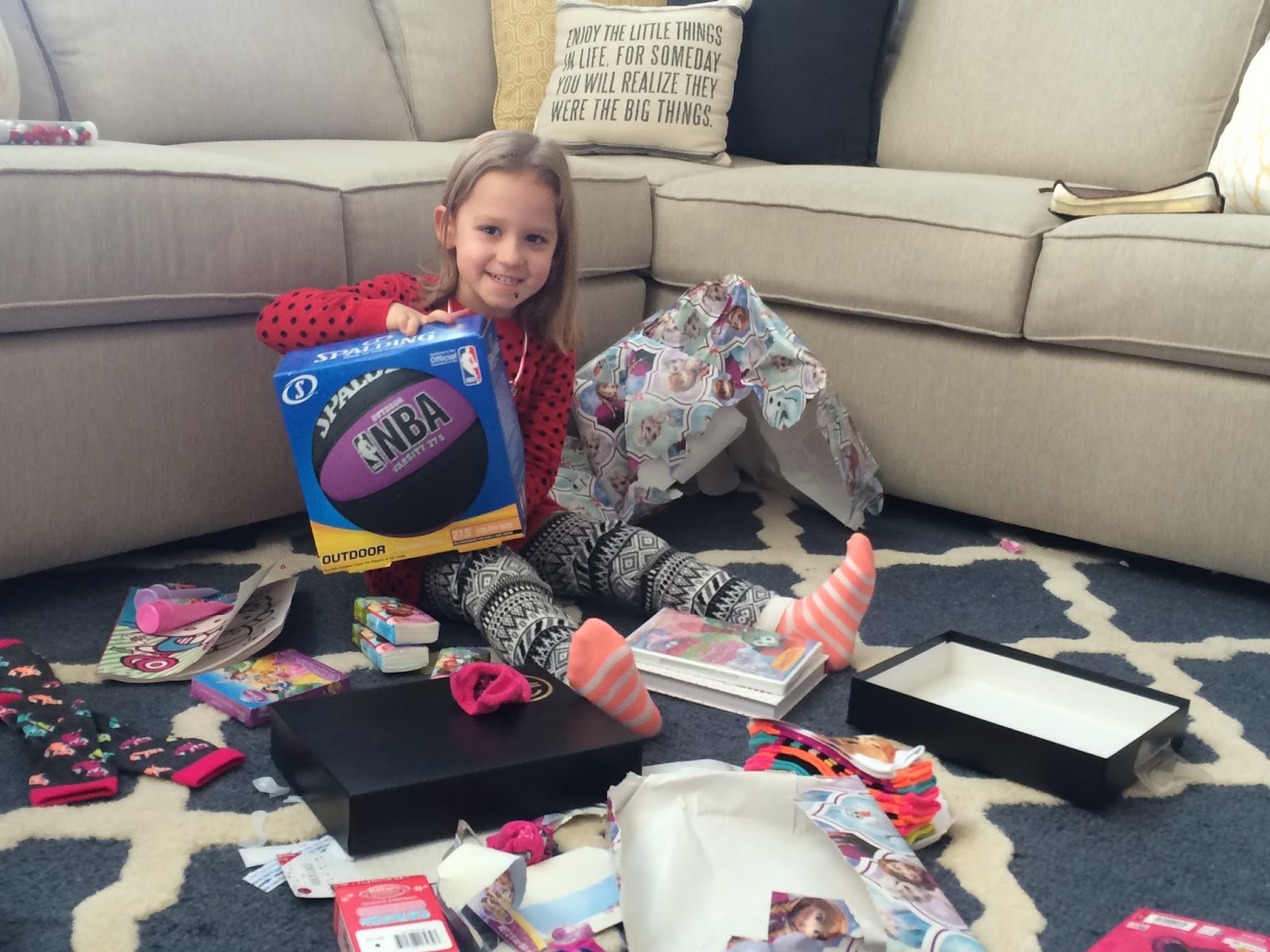 Brynn woke up around 7:30 (I was surprised it was that late! HA!) and came down to find "Grace's PASTRY CART!" (An American Girl Doll thing she wanted). She played and played and kept asking when we could get Emory up. We finally woke Emory up around 8:30 and we all got dressed before we started opening Christmas gifts...